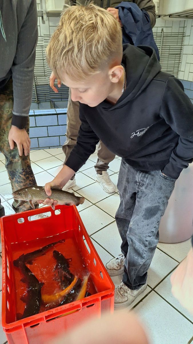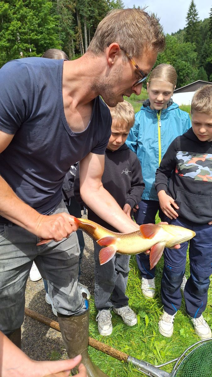 Beim Ausflug hatten die Jugendlichen das große Glück, einige wirklich schöne Forellen zu sehen. Die Fische waren nicht nur von beeindruckender Größe, sondern auch von einer leuchtenden Farbe und bester Kondition. Diese Forellen sind ein echter Beweis für die hohe Wasserqualität und die gute Pflege des Gewässers.