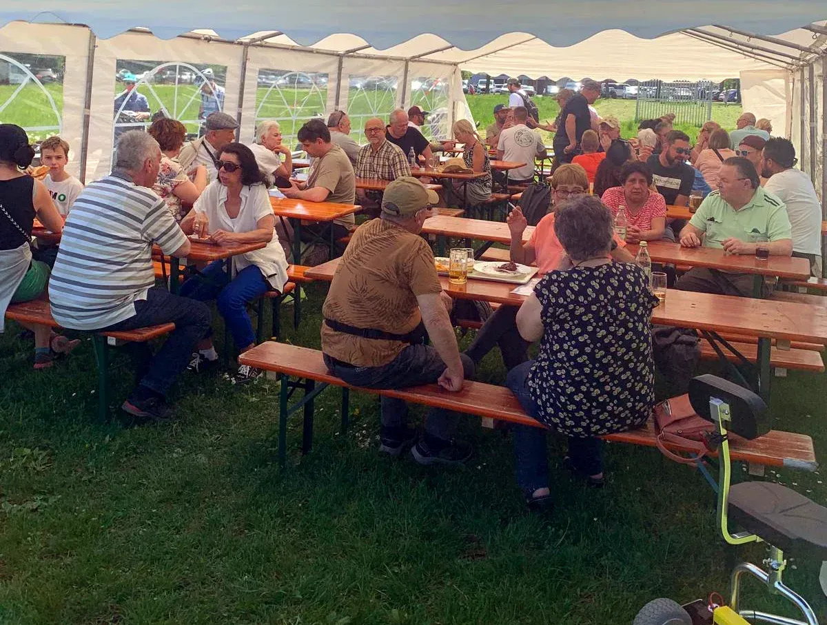Schon ab den frühen Morgenstunden füllten sich die Zelte vor dem Vereinsheim nach und nach. Die Gäste konnten sich an den reichhaltigen Essens- und Getränkeangeboten der Vereinsmitglieder stärken. Neben Schlachtplatte, Kesselfleisch, Heiße Rote, Seelachsweck und Pommes wurden auch Kaffee und Kuchen und Popcorn angeboten.